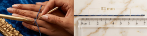 - A l’aide d’une règle, mesurez la distance en millimètres entre les deux points et vous obtiendrez le tour de doigt à commander.